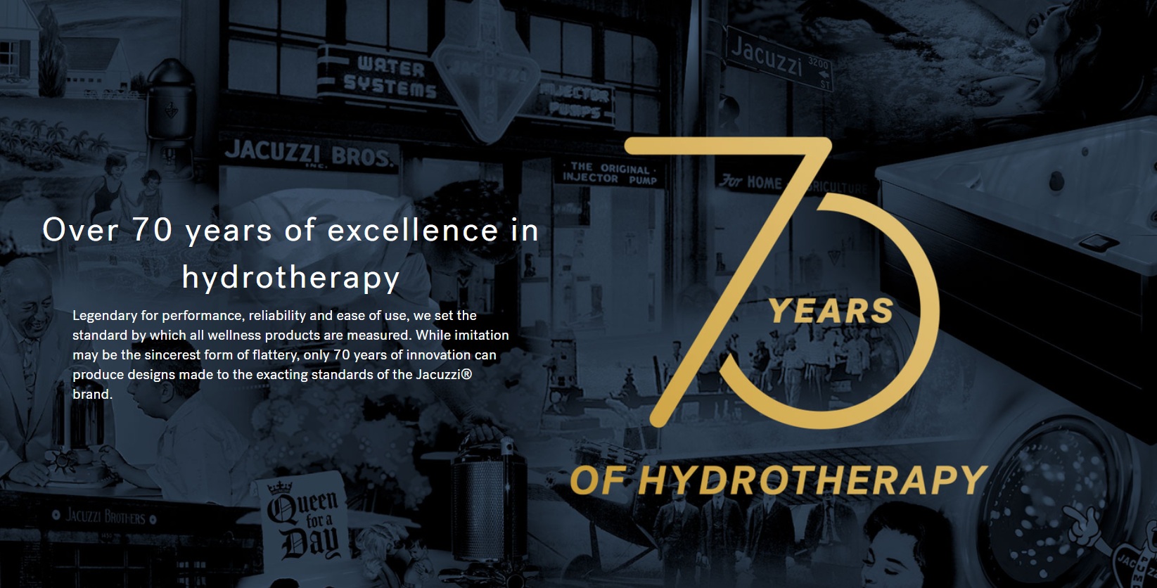 Câu chuyện bắt đầu với Candido Jacuzzi, một trong bảy anh em nhà Jacuzzi — những kỹ sư nhập cư tại Mỹ. Khi con trai ông mắc bệnh viêm khớp dạng thấp, Candido đã chế tạo một thiết bị bơm nhúng nhằm tái tạo hiệu quả của thủy trị liệu y khoa ngay tại nhà, giúp con mình giảm đau và cải thiện vận động.